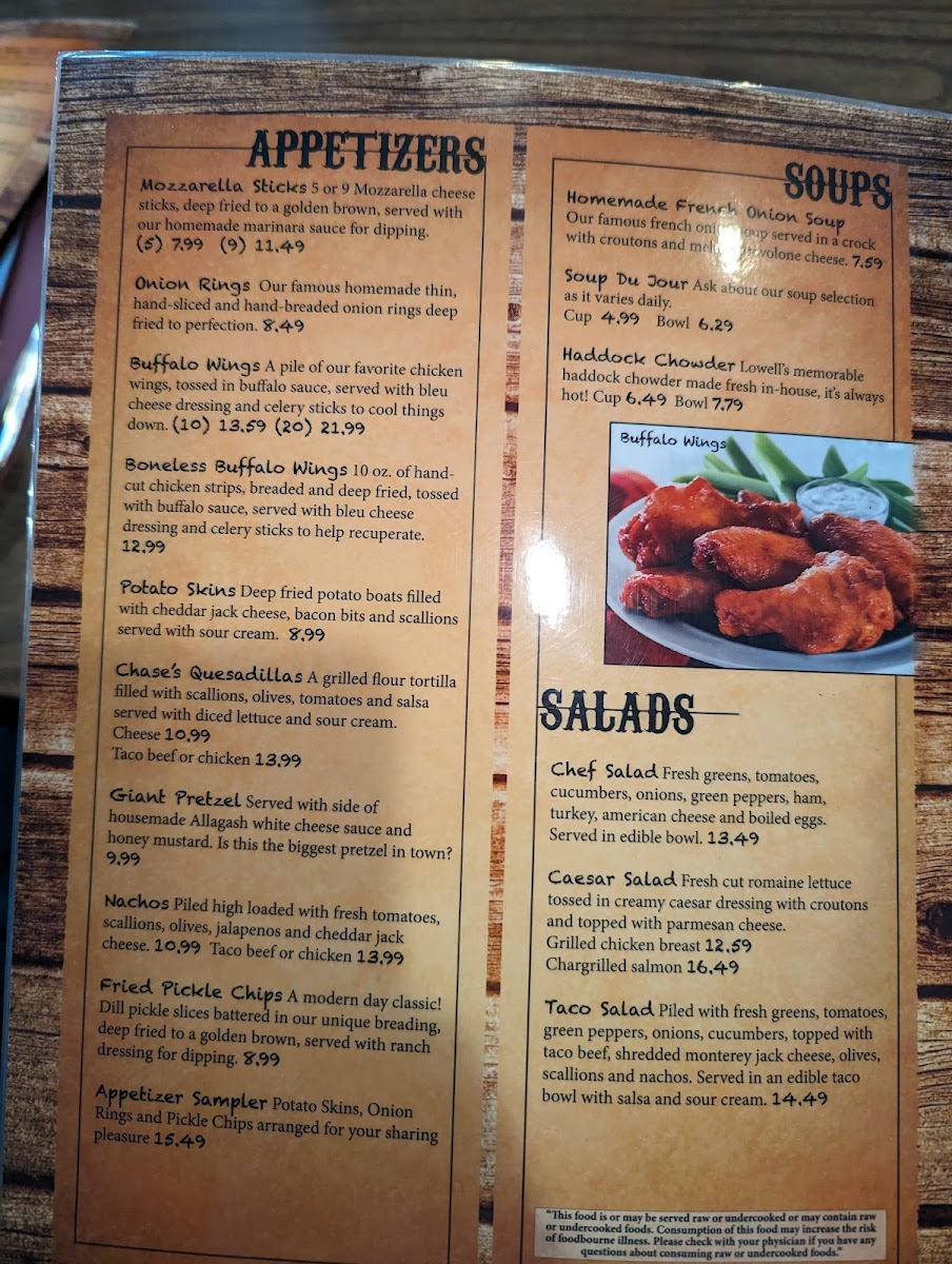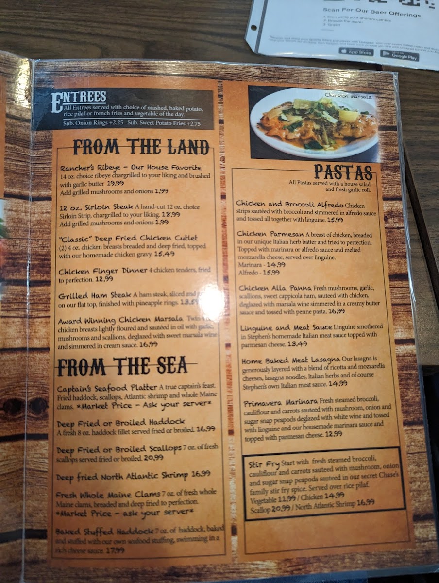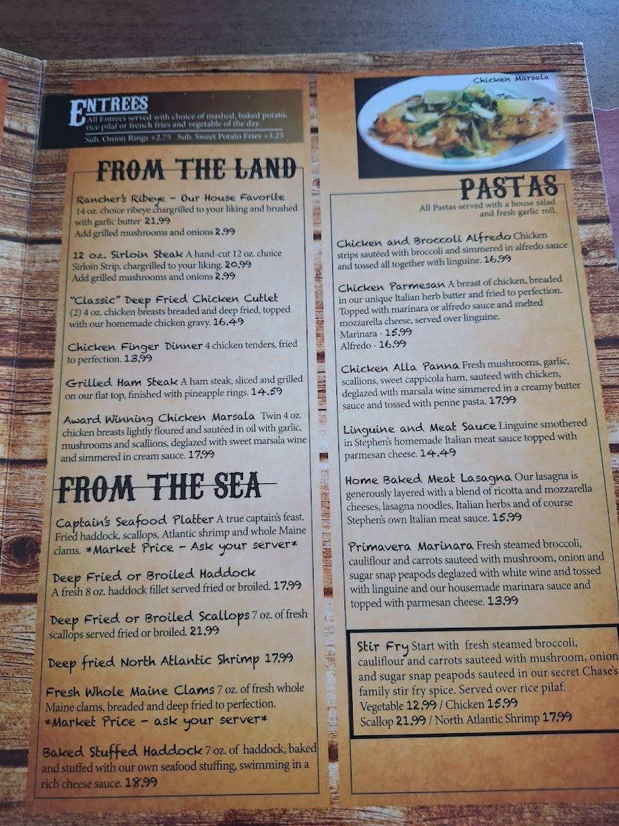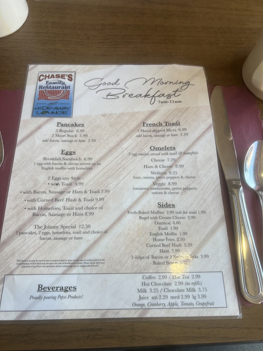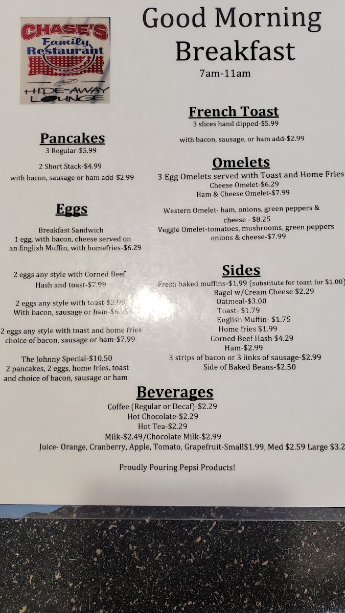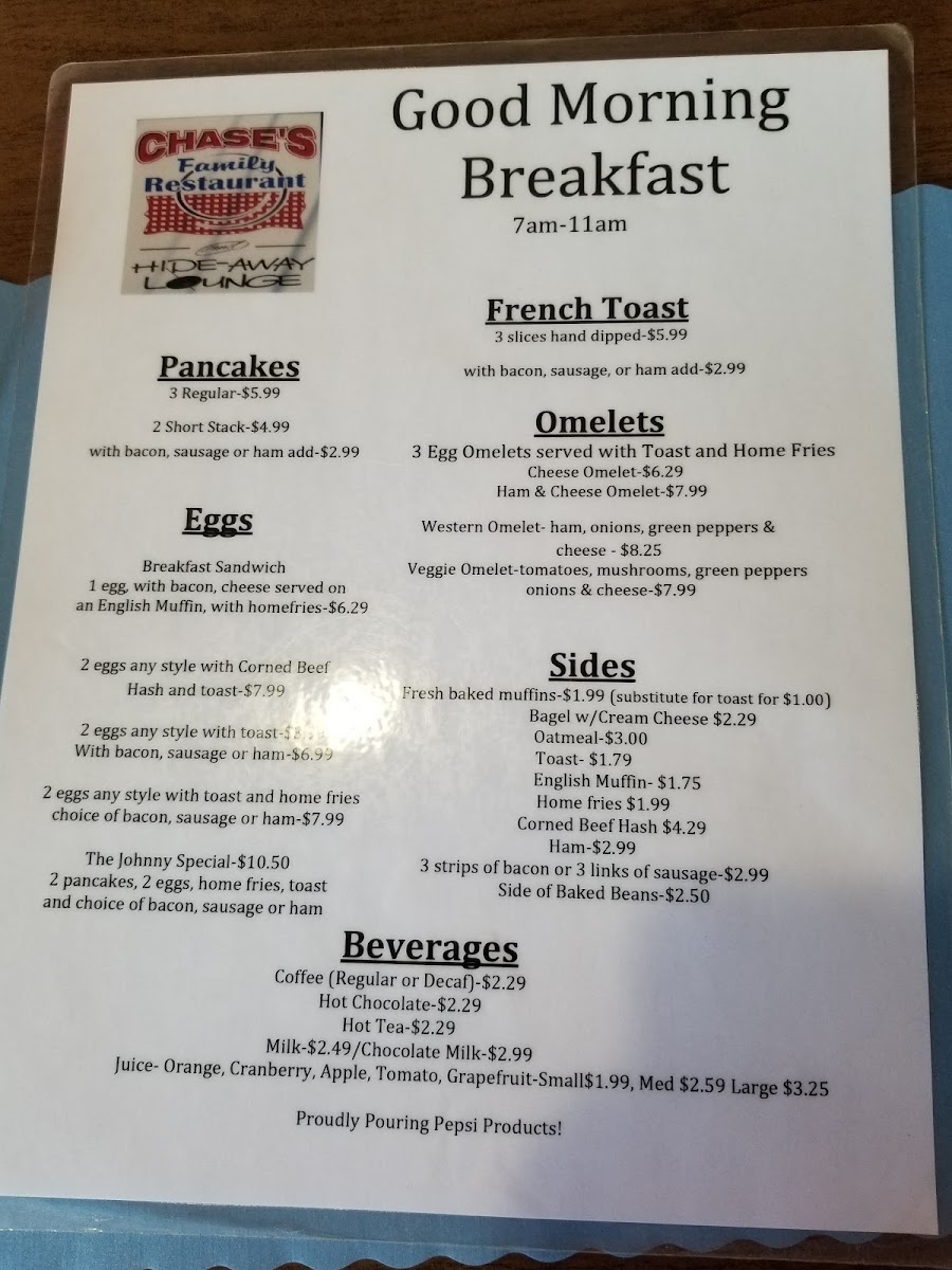 Chase's Family Restaurant & Hide-Away Lounge Menu